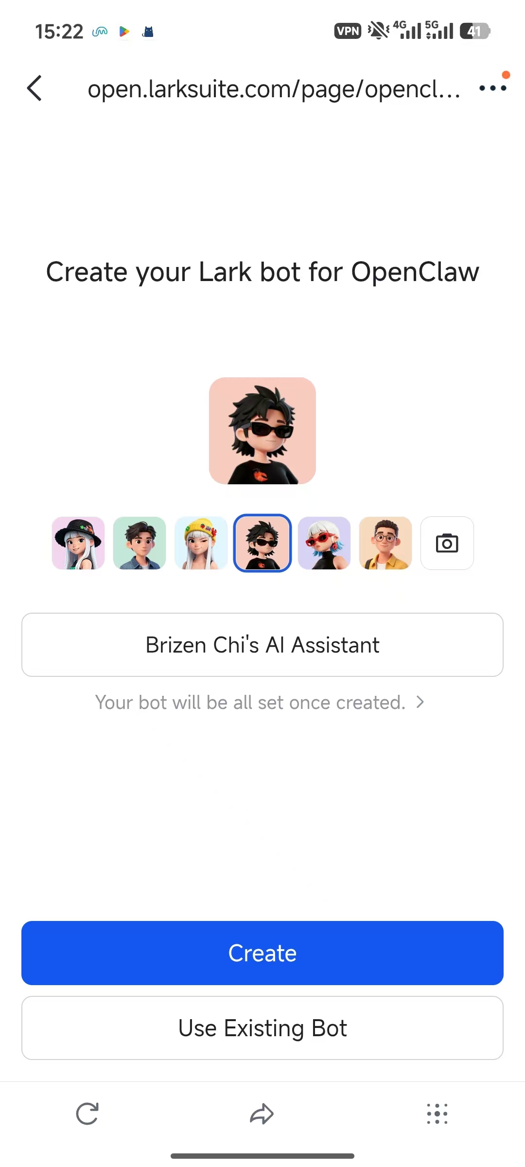 Can I customize my Lark bot's appearance after creation?