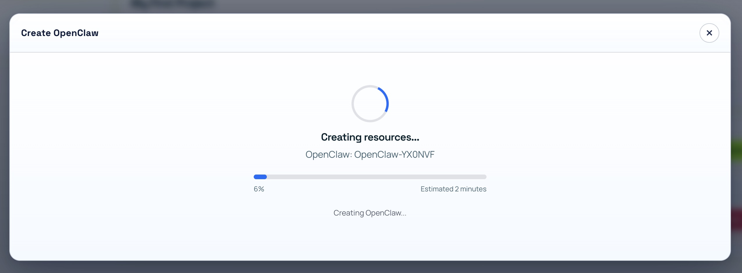 This typically takes about 2 minutes. You can close the dialog and let ClawMesh handle the rest in the background.